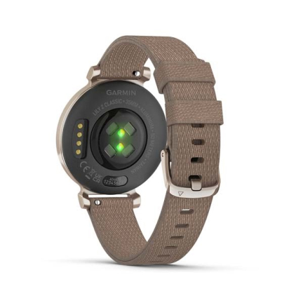 Garmin Lily 2 Classic встречает аккуратным, чуть более «взрослым» дизайном: корпус стал визуально строже, а узкие ремешки из обновлённой кожи сидят по-часычески мягко. В сравнении с первой Lily форма сохранилась, но стекло теперь чувствуется плотнее, а гравировка под ним — деталь, которая делает модель отличимой среди линейки. Габариты остались миниатюрными, так что часы по-прежнему воспринимаются как аксессуар, а не как гаджет с тяжёлым спортивным характером.